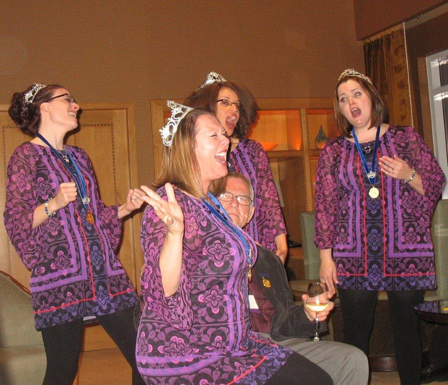 - We laughed a LOT on this trip. For those of you who haven’t experienced a “reigning year” as Harmony Queens, it’s pretty intense. A lot of back-to-back schedule obligations, a lot of singing, a lot of visiting with friends–not a lot of sleep, not a lot of food, and not a lot of time to change! But in all of this “stress” (welcomed as it may be), Epic stayed happy and supportive and we laughed a LOT. We just about had Kris peeing her pants a few times. Anne knows how to capture a room (sitting on David Wright’s lap will certainly grab some attention… don’t worry, it was in a song!) and also clear out a room (thank God we weren’t locked in that warm-up room). We we are blessed to have each other as friends and we are blessed that we laugh a lot, even in intense situations.
